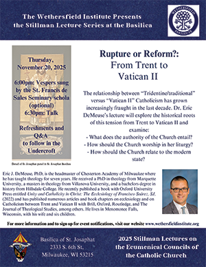 The Basilica of St. Josaphat is a ministry of the Conventual Franciscan Friars on the South Side of Milwaukee in Historic Lincoln Village. The Basilica is a Franciscan center for prayer and spirituality, inspiration and beauty. It is home to a vibrant Roman Catholic parish and remains a testament to the faith of the Polish immigrants who created it.